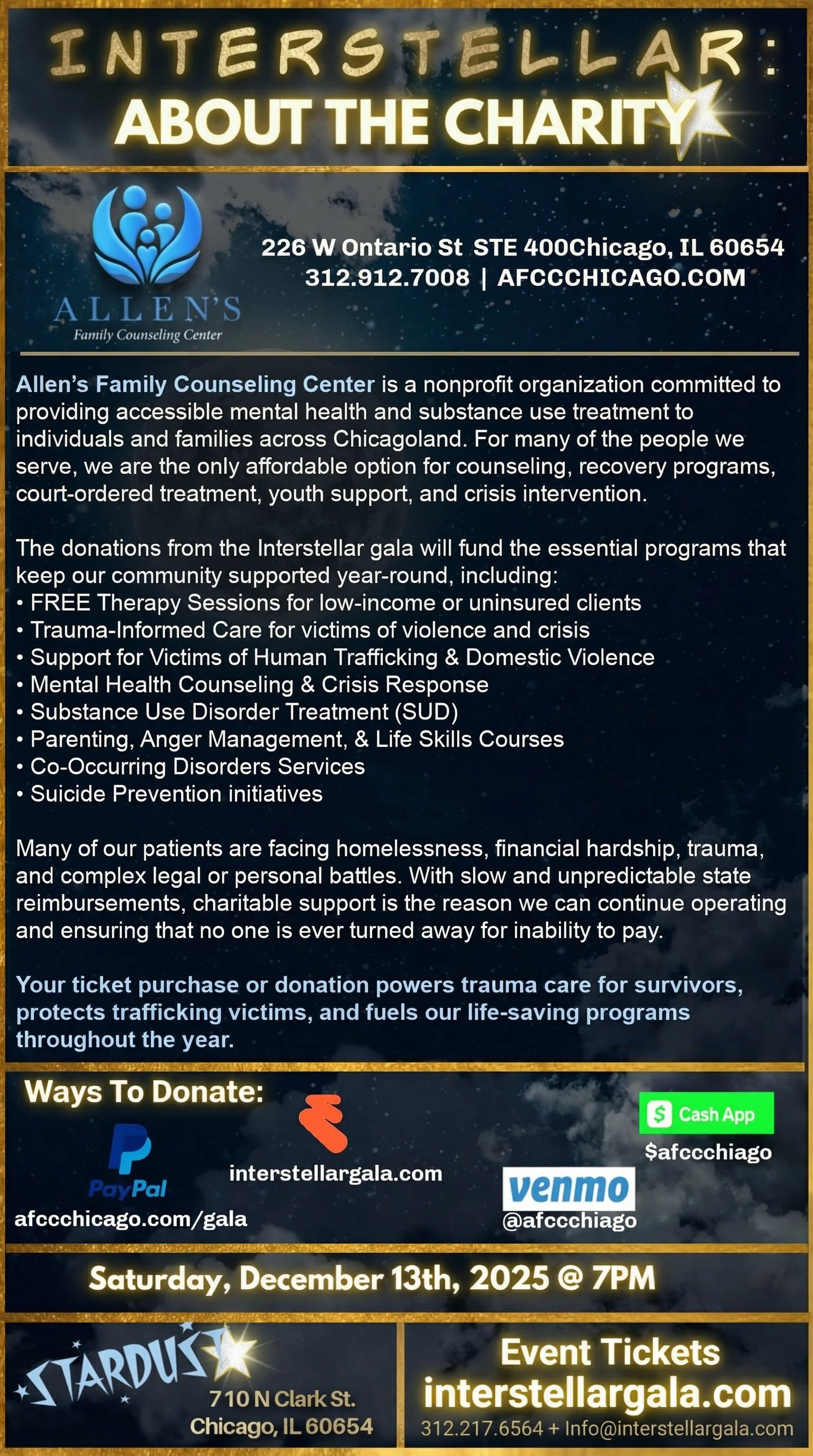 The donations from the Interstellar gala will fund the essential programs that keep our community supported year-round, including:
